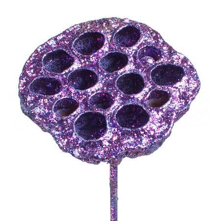 Декор плод лотоса на штекере пурпурный,с пурпурными блестками – это украшение, которое позволяет создать идею и сюжет цветочной композиции, делает ее более интересной и уникальной. Именно такие элементы задают особое праздничное настроение. Оригинально оформленный букет всегда принесет много приятных эмоций и надолго запомнится. Представленный декор качественный и сертифицирован, поэтому не теряет свой первоначальный вид очень долго. Его длина 50 см.