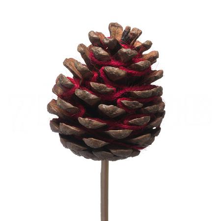 Декор шишка сосновая 5-7см натуральная + красная резьба
