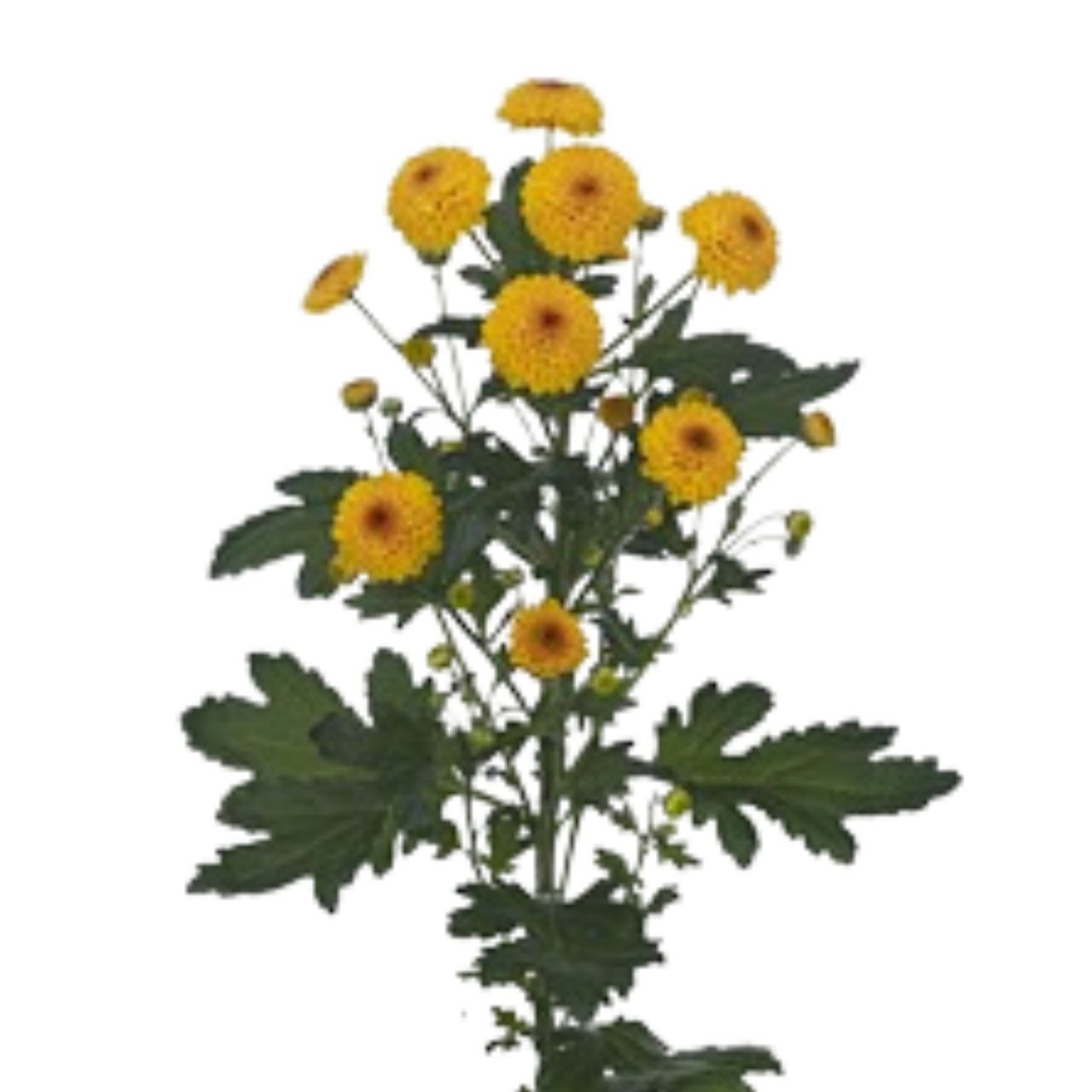 Хризантема кустовая – разветвленный полукустарниковый вид, украшенный глубокораздельными листьями светло-зеленых оттенков. Корзинки-соцветия состоят из желтых или белых цветов. При выращивании в открытом грунте требуется солнечный участок. Период цветения в холодном климате продолжается с мая по октябрь, а в мягком – круглый год. Стебель может иметь длину 55 см . Ширина составляет является стандартной для такого рода растений.