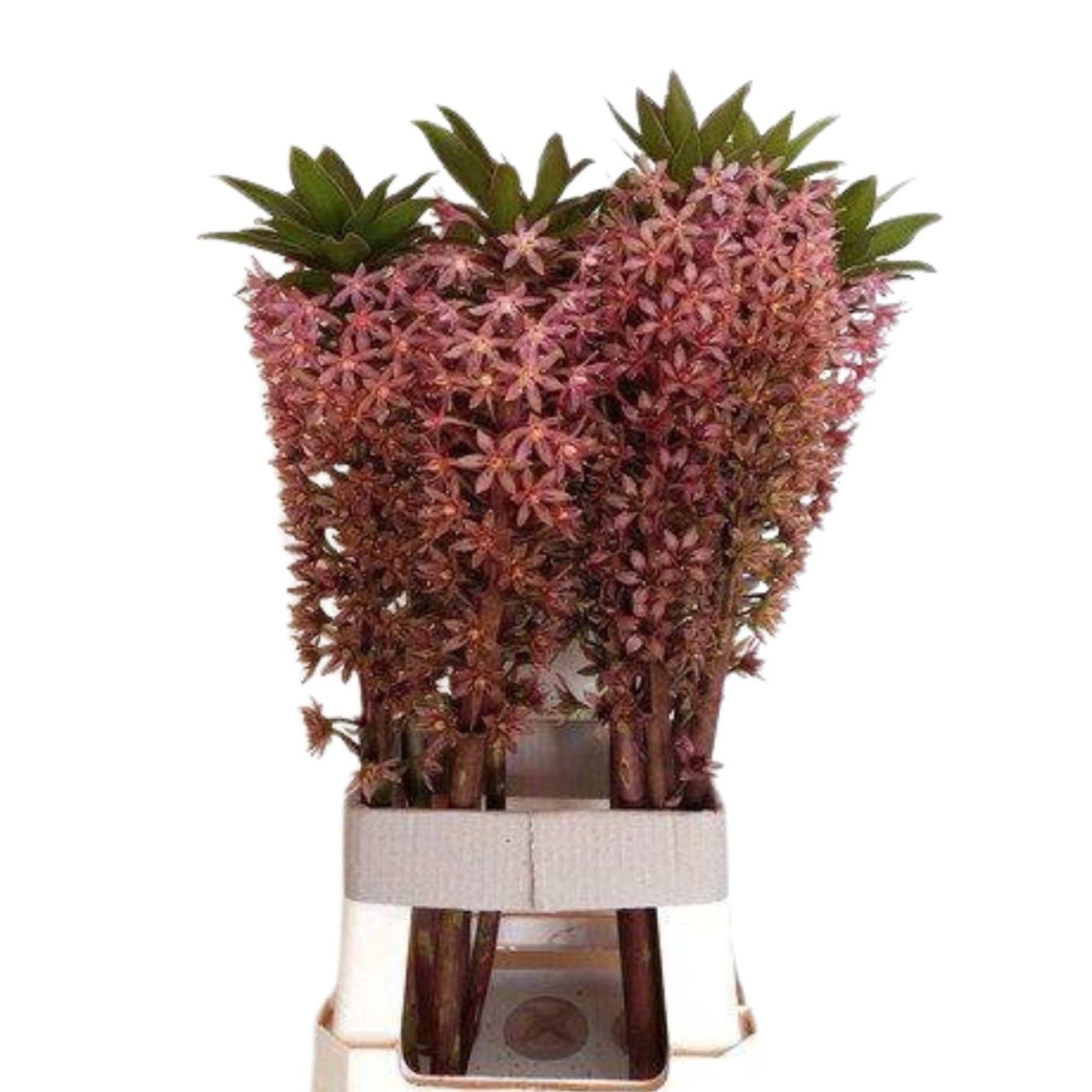 Эукомис ред девил позволяет составлять красивые и необычные композиции, которые создадут особенную атмосферу в ресторане, торжественном зале или любом другом помещении. Оригинальное оформление всегда принесет много приятных эмоций и надолго запомнится. Растение достаточно стойкое, поэтому при правильном уходе сохранит приятный внешний вид довольно долго. Его длина 85 см. Страна-поставщик: НИДЕРЛАНДЫ.